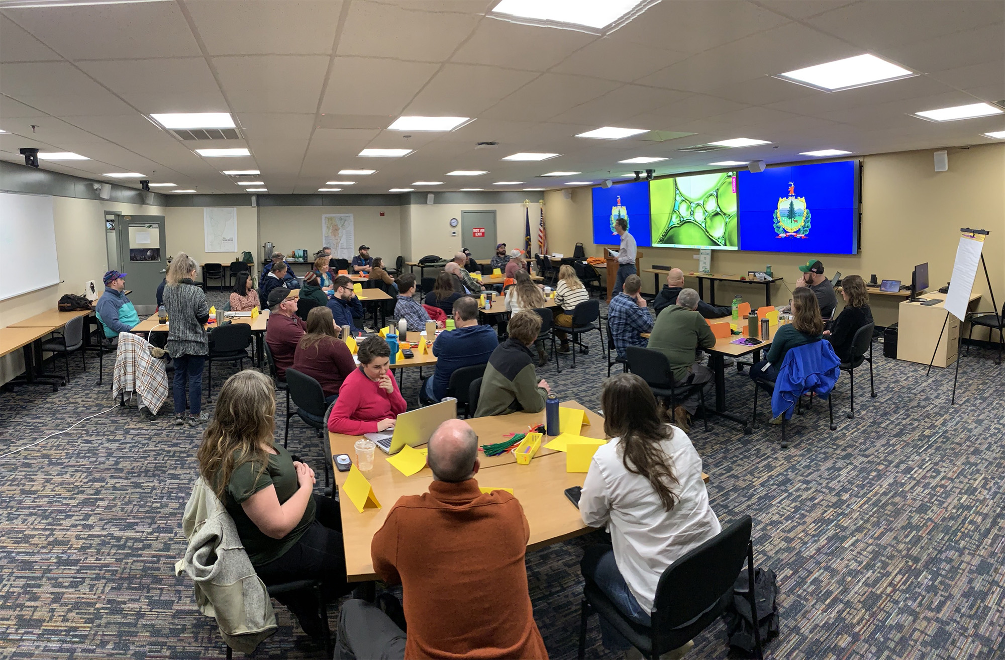 A state-of-the-art training room and auditorium audio and video system installation for the Vermont National Guard at Camp Johnson.